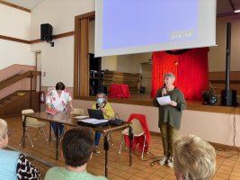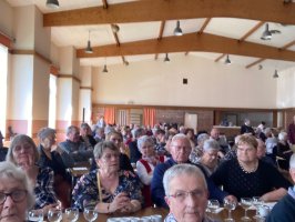 Après un excellent repas au Lion d’Or pour les vingt bénévoles qui avaient préparé la salle le matin, l’assemblée générale a eu lieu sous la direction de Jacqueline Terrien, présidente du Territoire de Bais suivie par un spectacle hilarant et un goûter très convivial.