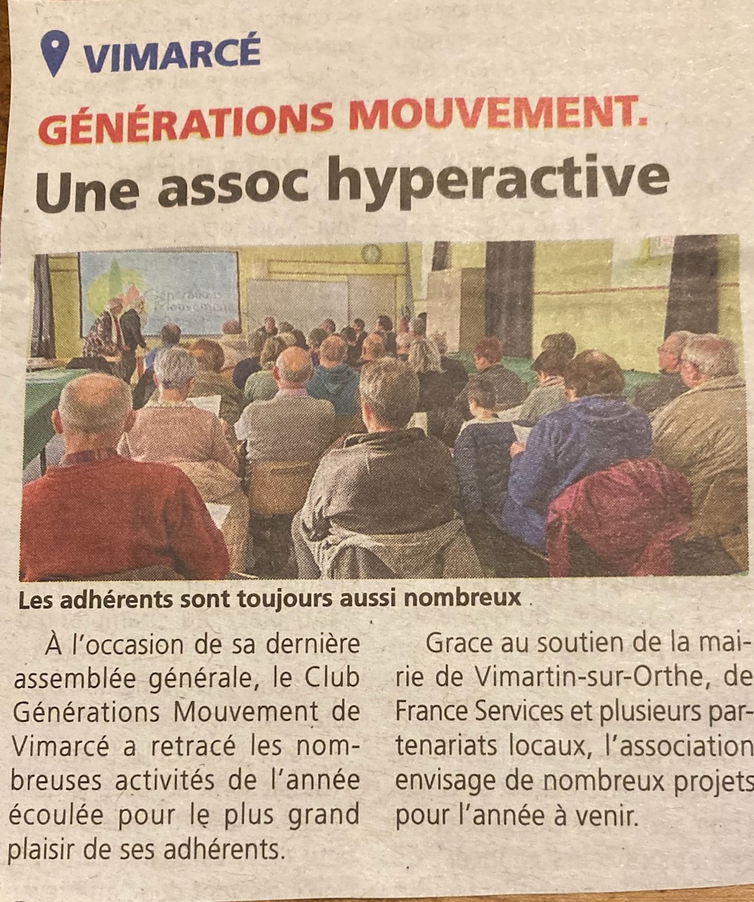 À l’occasion de sa dernière assemblée générale, le Club de Générations Mouvement de Vimarcé a retracé les nombreuses activités de l’année écoulée pour le plus grand plaisir de ses adhérents.